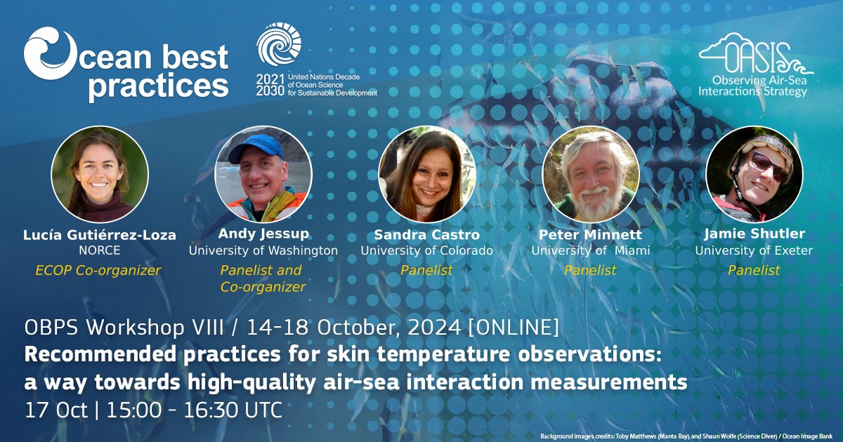 On 17 October 2024 our project scientific lead Jamie Shutler presented OC4C at the the OBP workshop. He was joined by other panelists including friend of the project Andy Jessup, (University of Washington) to discuss recommended practices for skin temperature observations: a way towards high quality air-sea interaction measurements.